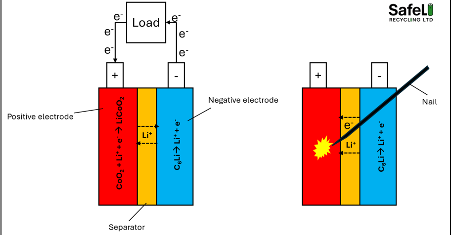 Lithium ion batteries offer the highest energy densities of any type of batteries and as such, they are used in an increasing number of applications. The down side with this is that it leads to an increasing number of battery fires since more batteries leads to a higher chance of fire. Since 2022, the number of call outs by the fire department for fires involving lithium ion batteries has increased from 600 to 1330 per year in 2024 (source: Money Super Market). The recycling industry is particularly vulnerable to battery fires as it is estimated that 48% of all waste fires occurring in the UK involve a lithium ion battery (National Fire Chiefs Council). So why is it that lithium ion batteries catch fire so readily and how does the fire spread?